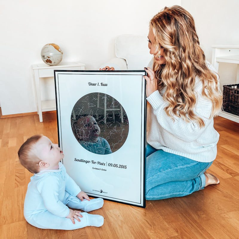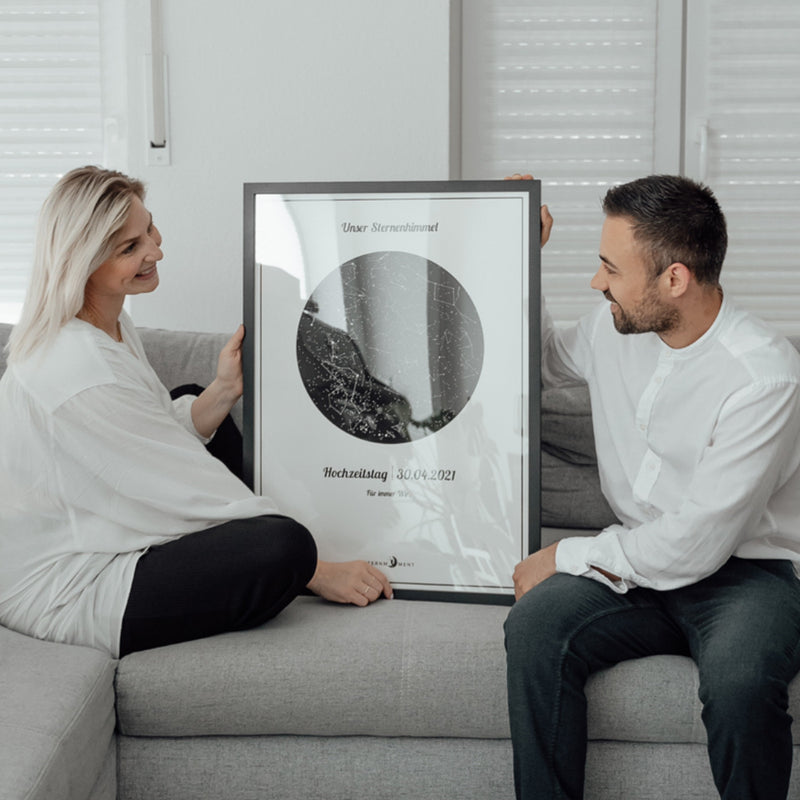 Sternmoment Gestalten„Sternmoment hat es uns ermöglicht, die Sterne von unserem ersten Treffen für immer festzuhalten. Das Poster erinnert und daran, wie besonders dieser Moment war. Außerdem passt das Poster perfekt in unser Wohnzimmer und ist ein echter Hingucker“